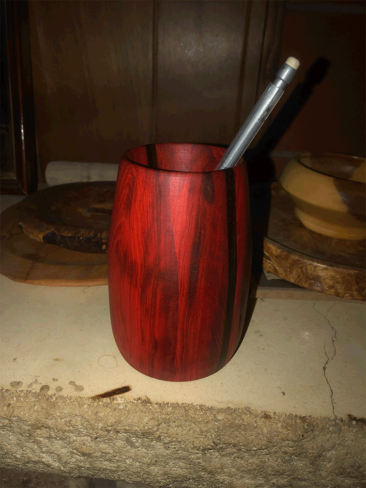 Pencil Holder | Red Heart and Ziricote Laminated |